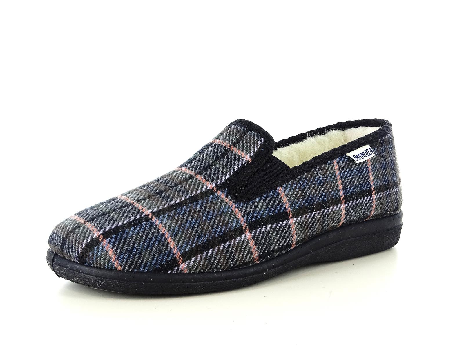 pantofola realizzata interamente in Italia, con fondo antiscivolo in vera gomma. L`interno del prodotto è interamente foderato in calda lana a pelo vivo. La calzata è comoda, aiutata dai due spacchetti laterali dotati di elastici. Si adatta perfettamente a qualsiasi piede, mantenendolo caldo ed asciutto. L`altezza della zeppa è di 2.5 cm.